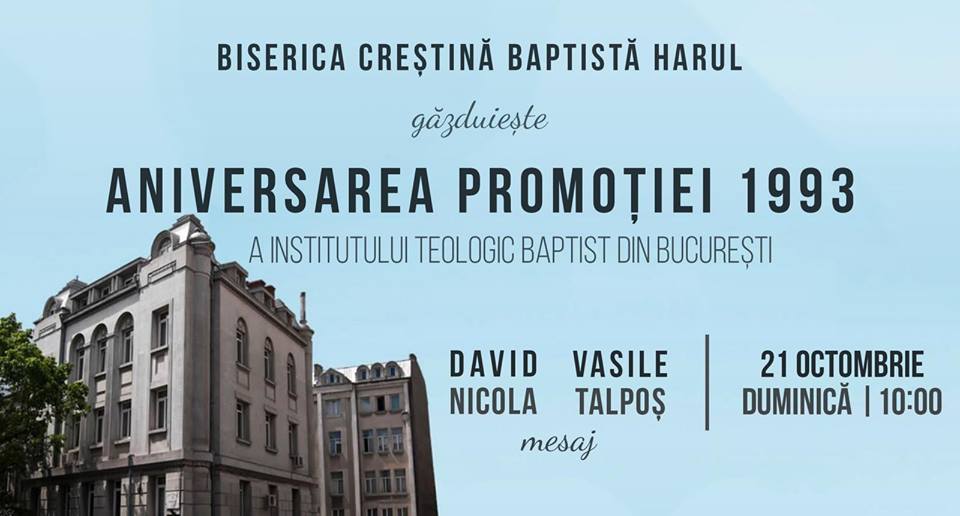 Duminică, 21 octombrie, Ionel Tuțac își adună colegii de la Institutul Teologic Baptist din București la sărbătoare. După 25 de ani de la absolvire, Promoția 1993 marchează un sfert de secol de slujire la Biserica Baptistă „Harul” din Lugoj.