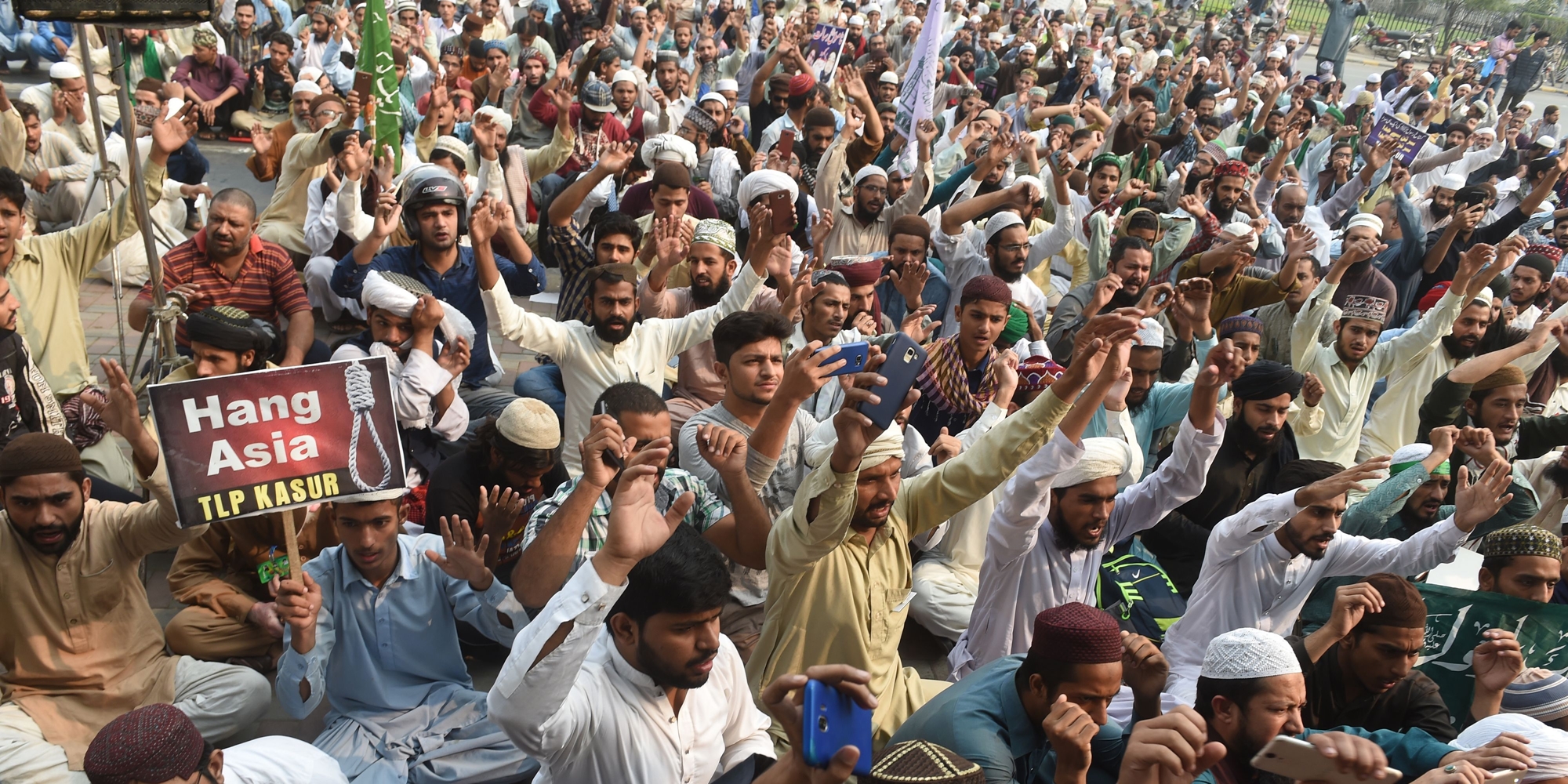 Imediat după anunțarea achitării lui Asia, peste 5 000 de islamiști s-au adunat în capitala Pakistanului, mai mult de 2 000 de persoane au blocat un drum important care leagă Islamabadul de orașul Rawalpindi. Sute de asemenea blocaje fiind înregistrate și pe o autostradă-cheie ce leagă capitala Islamabad de alte orașe importante, aproape 4 000 de demonstranți au fost și în orașul estic Lahore, cerând ca decizia de eliberarea a Asiei Bibi să fie anulată.