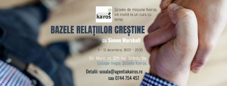 În perioada, 11-13decembrie, Școala de Misiune Transculturală Kairos invită toțidoritorii la un eveniment unic. Cursul „Bazele relațiilor creștine” susținut de Simon Marshall, directorul Colegiului Biblic Tilsley din Motherwell, Scoția. Subiectul este actual și necesar pentru fiecare creștin din zilele noastre.