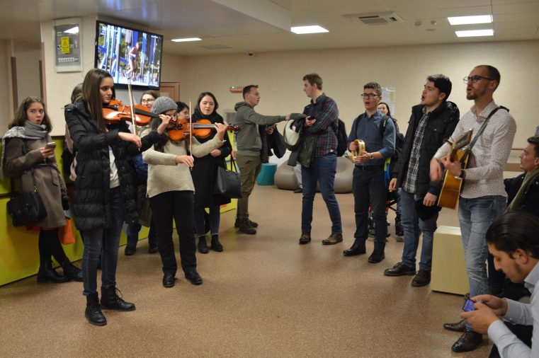 Peste 60 de studenți la medicină și teologie s-au echipat cu bucurie, dragoste, compasiune, melodii cu vestea bună și instrumente și au pornit la colindat. Nu colindatul ăla obișnuit la care primesc bomboane sau bani de buzunar. În pragul Nașterii Domnului, viitorii doctori pentru trup şi suflet au vizitat patru spitale din București. Pe lista instituțiilor medicale, de bucuria transmisă prin colinzi, s-au bucurat pacienții de la Spitalul Clinic de Urgență Bagdasar Arseni, Institutul de Recuperare Filantropia, Spitalul de Urgență pentru copii Grigore Alexăndrescu și Institutul Oncologic București.