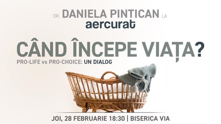 Joi, 28 februarie, tradiționala întâlnire a Bisericii VIA „Aer Curat” din Cluj-Napoca, găzduiește un dialog extrem de important, adeseori lăsat pe dinafară. „Când începe viața?” este genericul serii cu invitata Daniela Pintican.