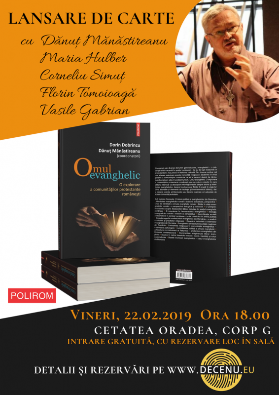 Platforma Decenu.eu (www.decenu.eu), a organizat în 22 februarie 2019, la Cetatea Oradea, lansarea de carte „Omul Evanghelic” cu mottoul „Cine sunt evanghelicii români?”. Au fost abordate teme precum istoria evanghelicilor, dinamica mediului evanghelic, perspectiva evanghelică asupra libertății religioase, locul textelor sacre (Biblia) în lumea evanghelicilor, teologia evanghelică, limbajul specific mediului evanghelic, muzica și beletristica evanghelică, media evanghelică, arhitectura evanghelică, educația în mediul evanghelic, situația femeii în același mediu, relațiile cu alte orientări creștine autohtone, legăturile cu centrele protestantismului evanghelic din Vestul Europei și din America de Nord și situația evanghelicilor în interiorul minorităților etnice din România.