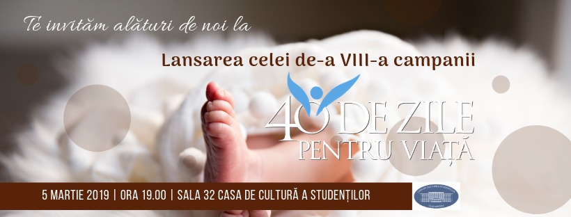 A VIII-a ediție a campaniei „40 de zile pentru viață” se va desfășura la Cluj-Napoca în perioada 6 martie-14 aprilie 2019. Această ediție va readuce în stradă creștini din toate denominațiunile având o intenție comună de rugăciune, încetarea avorturilor. Continuând rugăciunea pe strada Clinicilor, colţ cu Victor Babeş, organizatorii locali ai campaniei doresc să transmită în acest timp de 40 de zile mesajul privind valoarea pe care fiecare ființă umană o are începând de la concepție. Creștini din toate bisericile din Cluj, precum și din împrejurimi, se alătură celor peste 370 de orașe din toată lumea care se unesc în rugăciune începând cu 6 martie.