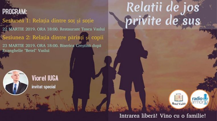 Familia și relațiile dintre cei ce o formează sunt un subiect tot mai actual în zilele noastre. De fapt acest subiect este veșnic actual! În perioada, 22-23 martie 2019, Biserica Creștină după Evanghelie „Betel” din Vaslui dedică două zile Conferinței pentru Familii: „Relații de jos, privite de sus”, cu pastorul Viorel Iuga.