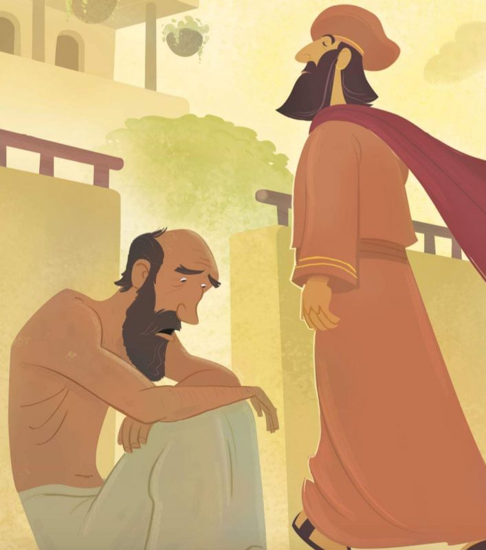 Paradoxul major din viața săracului Lazăr este faptul că numele său grecesc, care provine din numele Eleazar, înseamnă ajutat de Dumnezeu. Totuși, dacă te uitai la viața lui Lazăr, din punct de vedere material, fizic, social, din orice punct de vedere omenesc – părea să fie un dezastru, el însuși părea un om blestemat, bătut de Dumnezeu. Aproape auzi șoaptele celor care treceau pe lângă el și se întrebau stupefiați: ce o fi făcut acest individ de a fost lovit de Dumnezeu în halul acesta?