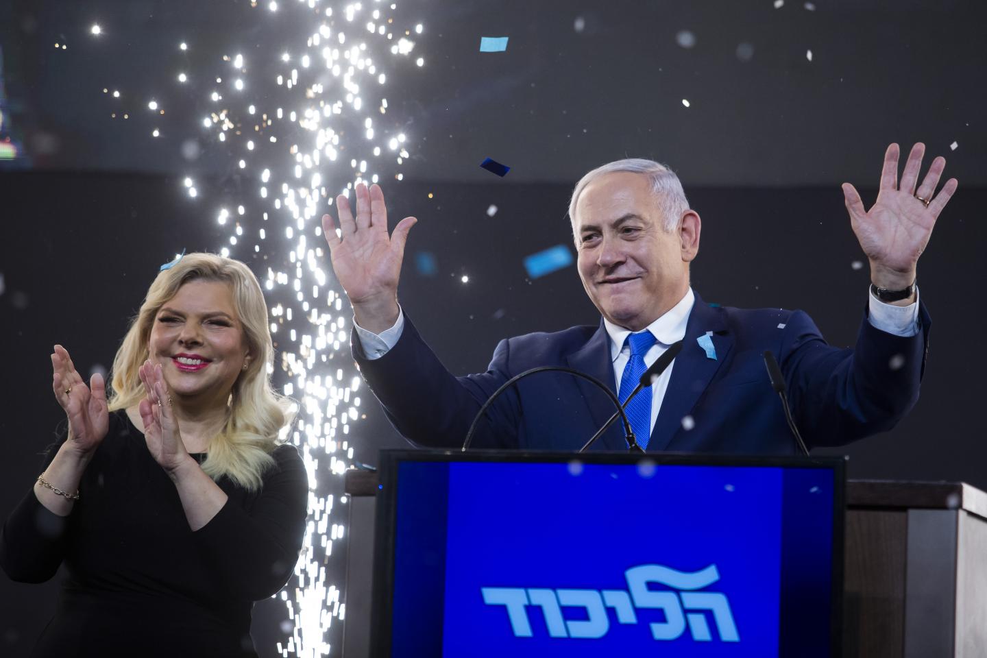 „Mi-aduc aminte acum 25 de ani, Sara şi cu mine am stat aici pentru prima dată. Şi acum suntem din nou aici datorită vouă!” a exclamat Netanyahu spunând că victoria împotriva lui Gantz este fără precedent.