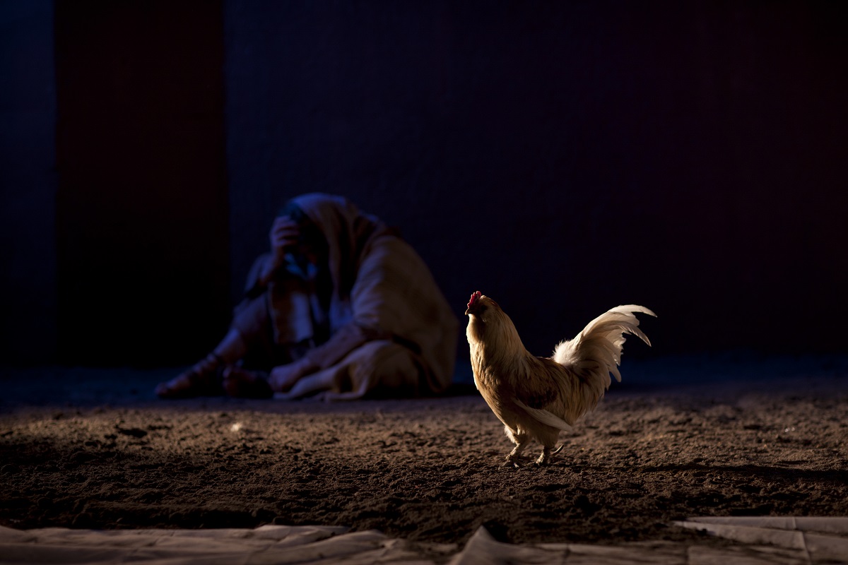 Atunci el a început să blesteme și să jure, zicând: „Nu‐L cunosc pe Omul Acesta! Și imediat a cântat cocoșul. Atunci Petru și‐a amintit cuvântul pe care i‐l spusese Isus: „Înainte de cântatul cocoșului, te vei lepăda de Mine de trei ori!” Și ieșind afară, a plâns cu amar.”