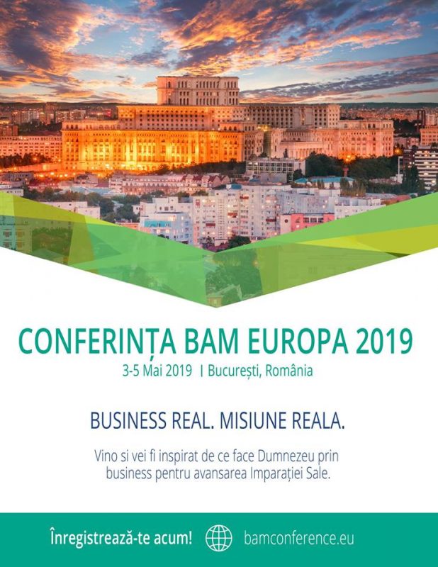 De asemenea, vineri seara, în data de 3 mai 2019, ora 19:00 în cadrul conferinței Business as Mission organizată la JW Marriott București va avea loc o întâlnire specială dedicată oamenilor de afaceri creștini din România. Evenimentul organizat cu sprijinul asociației Good Bureau, își propune să adune la un loc creștini implicați în afaceri și antreprenori din toată țara cu scopul de a crea oportunități de colaborare și conectare. Pentru mai multe detalii despre acest eveniment, vedeți detalii AICI!