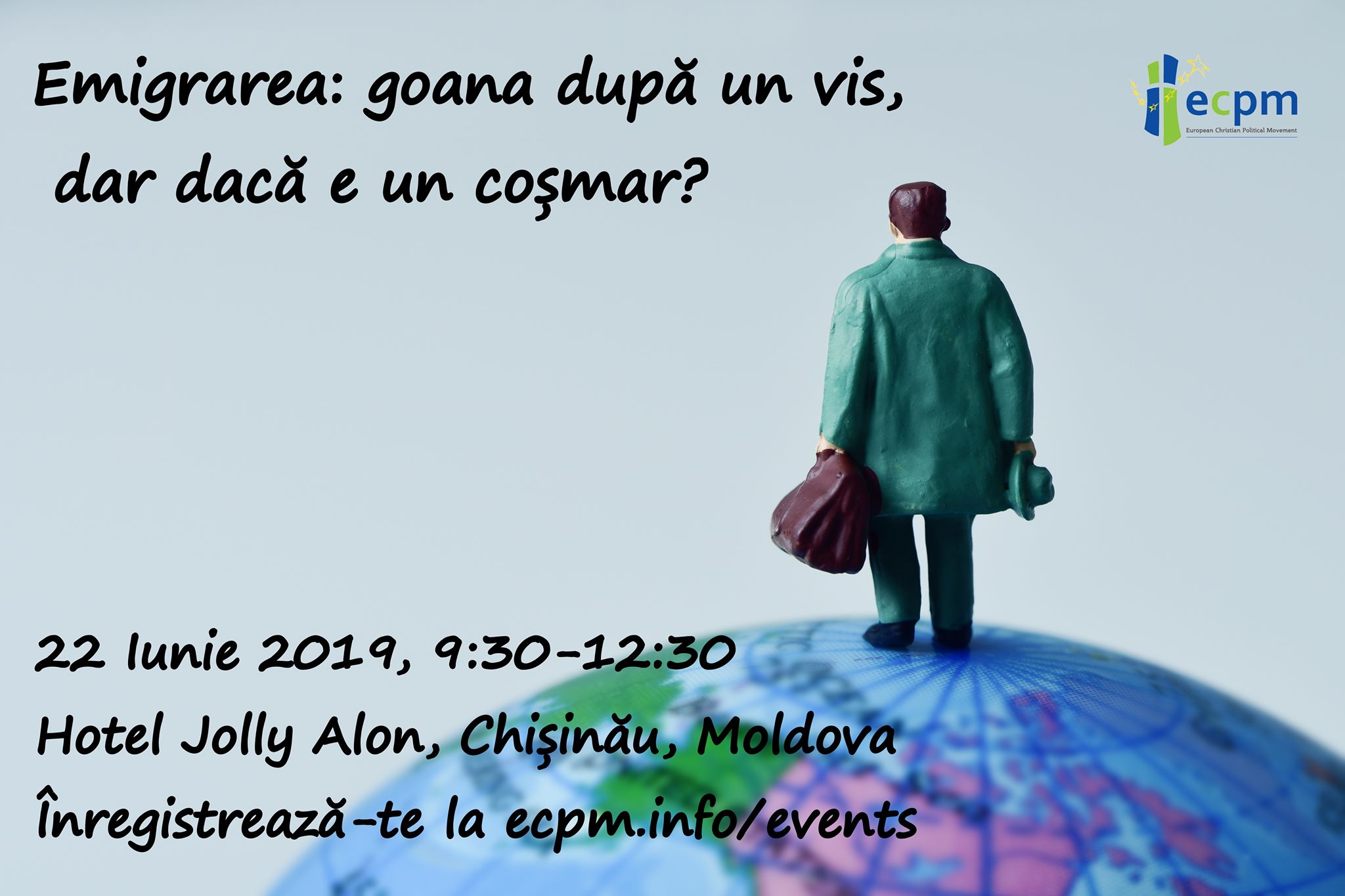 Mișcarea Politică Creștine Europeană (ECPM) invită la Conferința cu genericul: „Emigrația: Goana după un vis dar dacă e un coșmar?”. Discutăm cel mai actual subiect pentru Moldova sâmbătă, 22 iunie, între orele 09:30-12:30, la Hotelul Jolly Alon, pe str. Maria Cebotari 37.