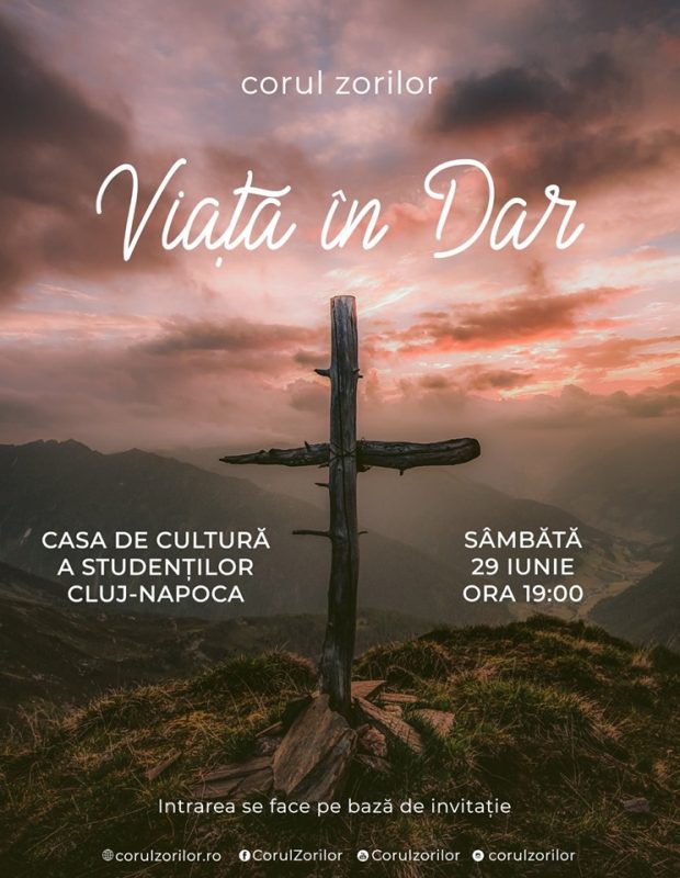 Ce poate fi mai frumos într-o seară de vară, ca un moment de închinare? Sâmbătă, 29 iunie, Corul Zorilor vă invită la o nouă lansare de CD într-un concert cu genericul „Viață în Dar”. Evenimentul începe la ora 19:00, la Casa de Cultură a Studenților din Cluj-Napoca.