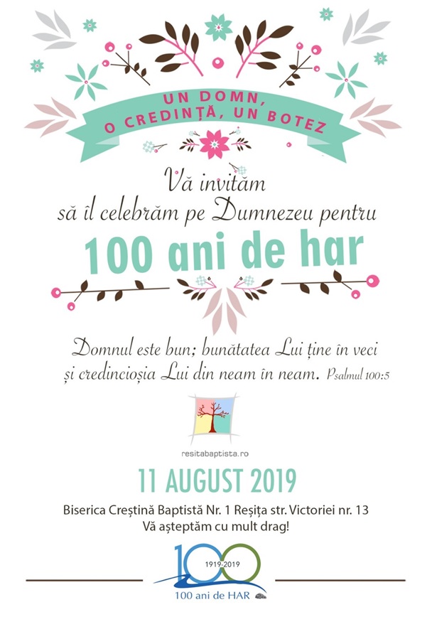Este versetul motto din această perioadă pentru reșițeni. Reșița sărbătorește un secol de har – 100 de ani de la primul grup organizat de credincioși baptiști din oraș (1919 – 2019).