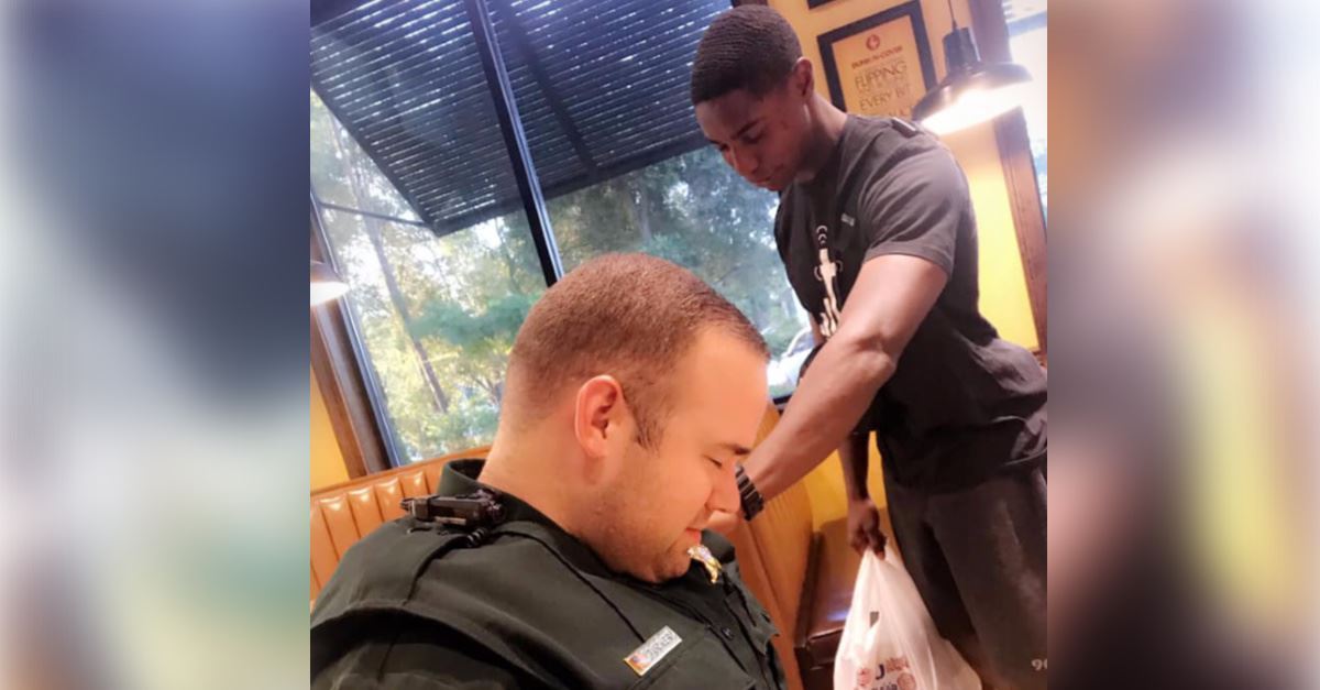 Fotografia cu un tânăr care se roagă pentru un polițist din Florida aduce un zâmbet pe fețele a mii de oameni.