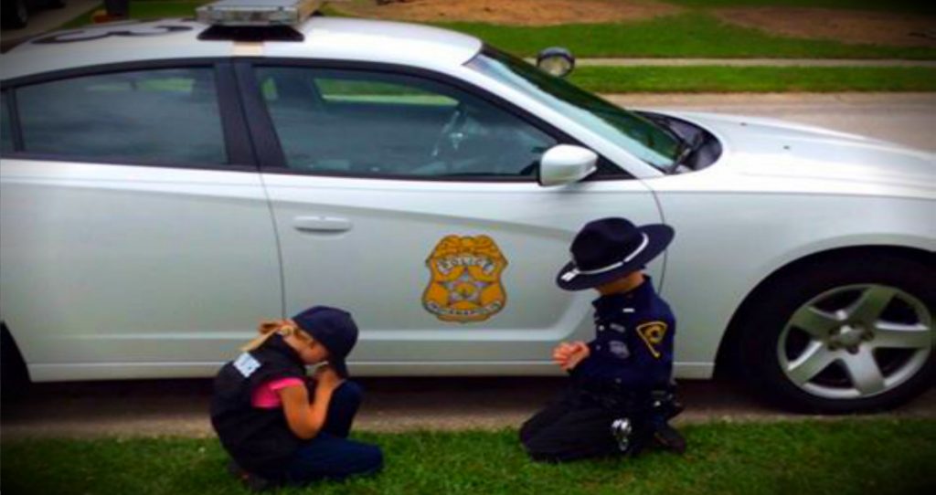 Imaginea a ajuns să fie vizionată de mii de oameni la câteva ore de la publicarea pe rețeaua de socializare ,,Facebook”. Soția unuia dintre polițiști a imortalizat momentul în care și-a văzut copiii lângă mașina tatălui lor, rugându-se, atât pentru protecția lui, cât și pentru cea a colegilor tatălui lor.
