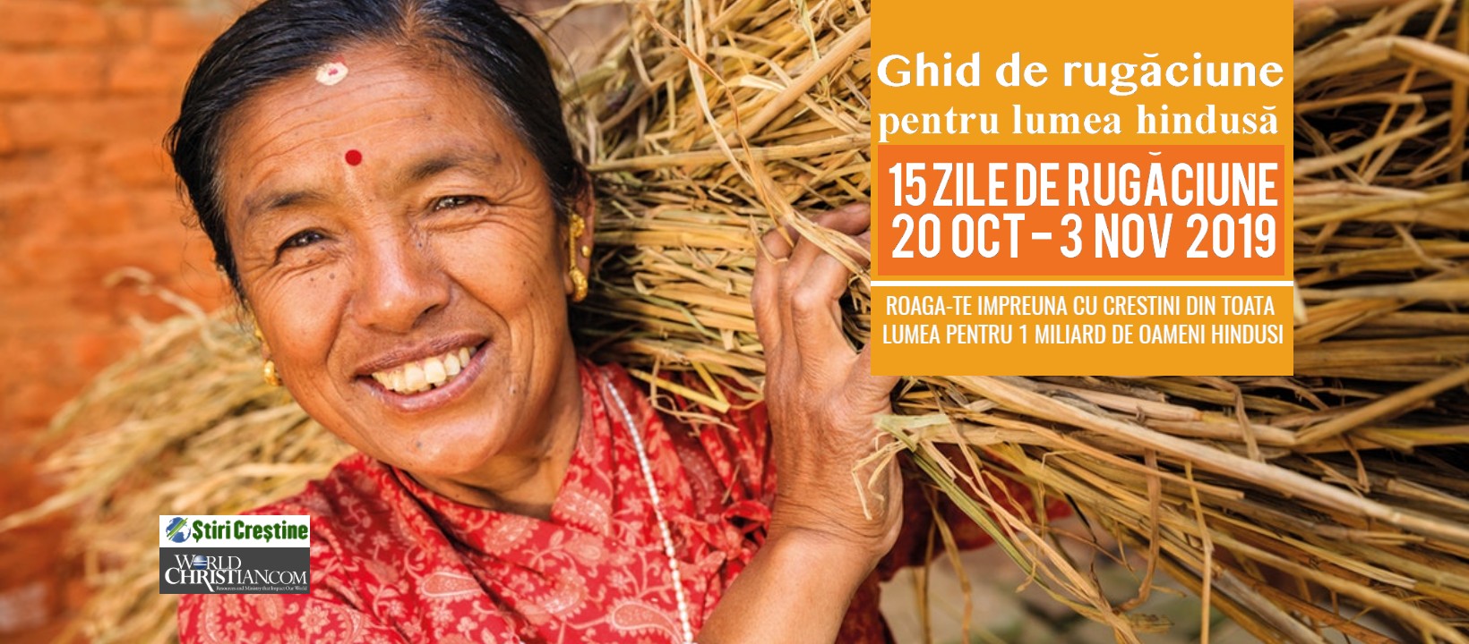 Așa cum v-am obișnuit cu Ghidul 30 de Zile de Rugăciune pentru Lumea Musulmană în perioada Ramadanului, vă lansăm o nouă provocare. În perioada, 20 octombrie – 03 noiembrie 2019, întreaga lume creștină este chemată la rugăciune pentru Lumea Hindusă. ȘtiriCreștine.ro în colaborare cu World Christian a tradus Ghidul „15 Zile de Rugăciune pentru Lumea Hindusă” în limba română și vă invită să vă alăturați milioanelor de creștini care vor lupta în rugăciune pentru câștigarea hindușilor pentru Împărăția Evangheliei.