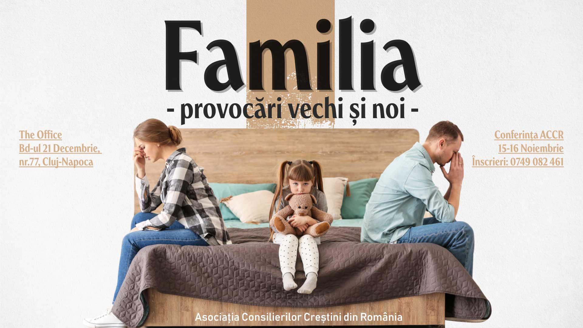Asociația Consilierilor Creștini din România invită specialiști din paleta largă a domeniului socio-uman: medici, psihologi, teologi etc. la Conferința Națională 2019 cu tema: „Familia – provocări vechi și noi”. Evenimentul se va desfășura în perioada 15-16 noiembrie, la Cluj-Napoca. Invitatul special al ediției este profesorul universitar și doctorul Emil Bartoș.