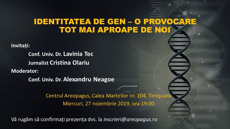 Centrul Areopagus din Timișoara vă invită miercuri, 27 noiembrie 2019, ora 19:00, la o discuție deschisă pe un subiect de tot mai mare actualitate!