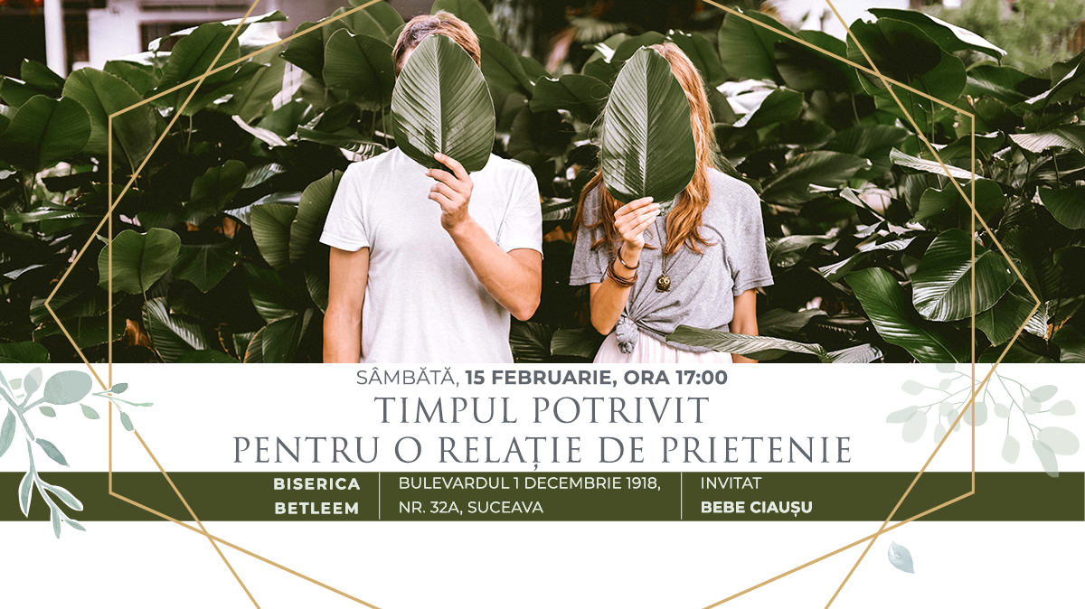 Sâmbătă, 15 februarie, ora 17:00, tinerii Bisericii Baptiste „Betleem” din Suceava, te invită alături de ei să afli răspunsuri biblice la aceste întrebări esențiale pentru viața fiecărui tânăr creștin.