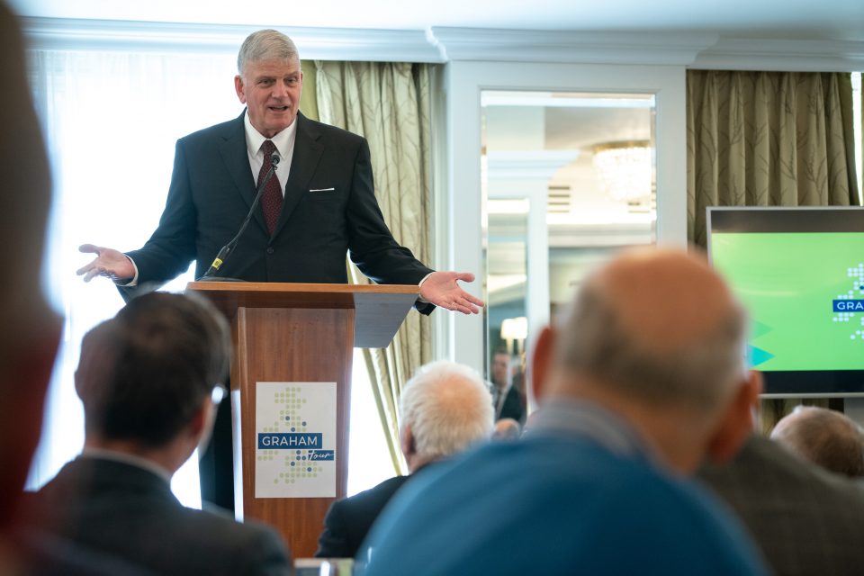 Franklin Graham s-a întâlnit sâmbăta trecută cu peste 100 de pastori și lideri ai bisericii, în timp ce a vizitat Regatul Unit înaintea turneului său evanghelistic din această primăvară. Peste 1.900 de biserici din U.K. cooperează cu Asociația Evanghelistică Billy Graham pentru Turul Graham 2020. Evenimentul va începe la Glasgow, Scoția, în luna mai, urmat de opriri în orașele engleze Newcastle, Sheffield, Milton Keynes, Liverpool, Birmingham și Londra; de asemenea va avea și o oprire în Cardiff, Țara Galilor.