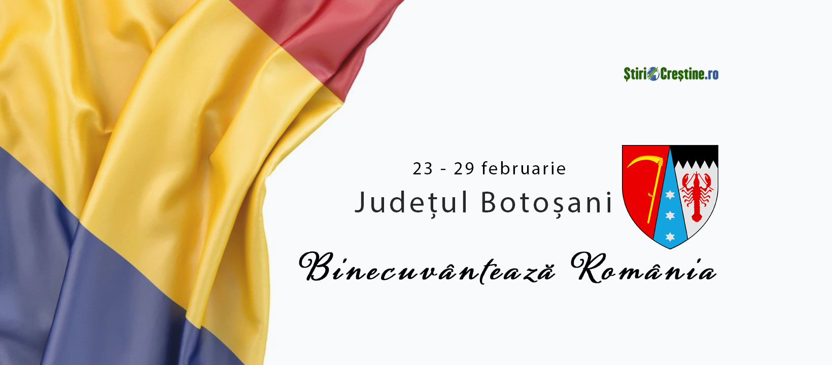 În săptămâna care ne stă în față, locuitorului județului Botoșani se roagă pentru România, aducând pe mâini de rugăciune următoarele motive: