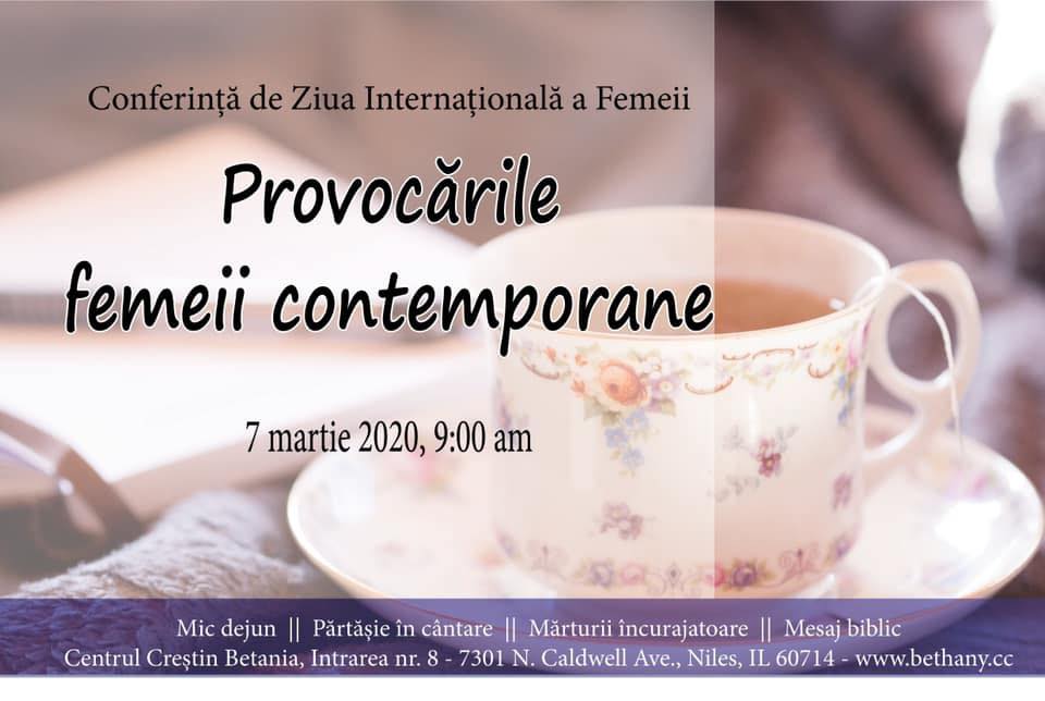 În preajma Zilei Internaționale a Femeii, Biserica Betania din Chicago, invită toate femeile din diasporă la o întâlnire specială. În cadrul unui Mic Dejun cu părtășie și cântare, organizatorii invită femeile din zonă să discute despre „Provocările Femeii Contemporane”.