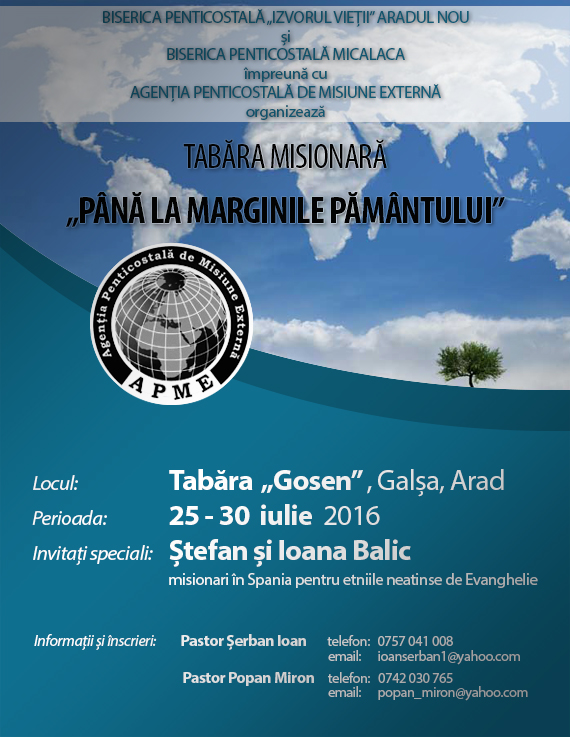 După familie, cel mai important proiect al vieții lui, a făcut un loc mare în inima lui pentru promovarea misiunii externe în județul Arad. Începând cu 2016, cu sprijinul Agenția Penticostală pentru Misiune Externă (APME) a organizat Tabăra Misionară „Până la marginile pământului”. Prima ediție s-a desfășurat la Galșa, iar apoi anual în alte locații de tabără din zona Aradului.