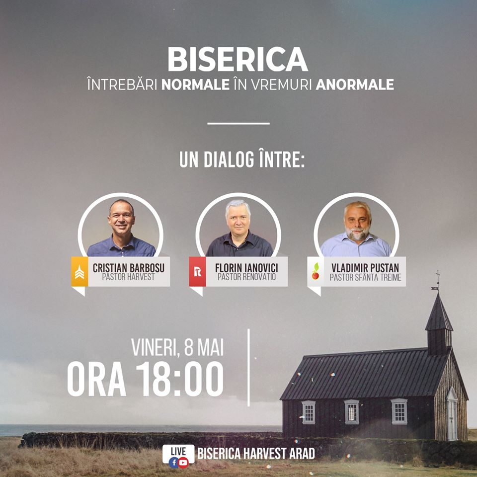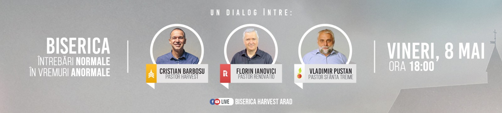 Vineri, 8 mai, Biserica Harvest Arad găzduiește un dialog live cu tema: „Biserica – întrebări normale în vremuri anormale”!