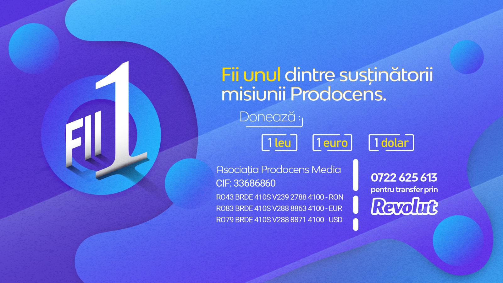 Pentru că nu vrem să ne oprim aici, astăzi lansăm campania de susținere „FII 1”, prin care noi. Prodocens media, vă invităm să fiți și să slujiți alături de noi, să fiți UNUL dintre aceia care se implică și care se jertfesc pentru ca Adevărul să ajungă până la marginile pământului.