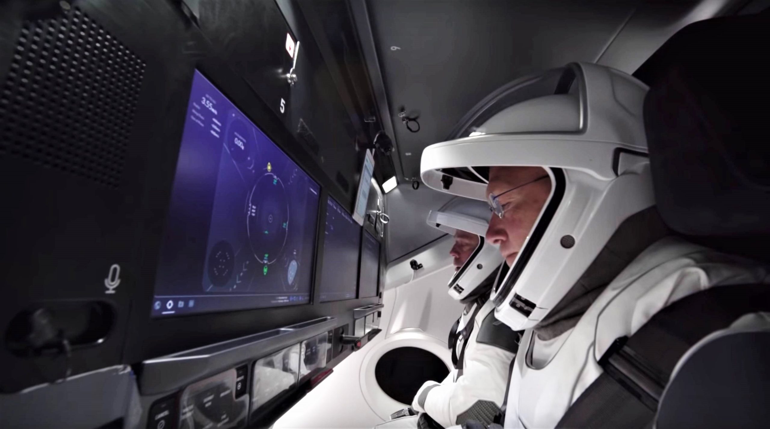 Doug Hurley și Bob Behnken de la NASA „și-au luat zborul” la 3:32pm (22:22 ora româniei) la bordul unei capsule Dragon alb-negru, în formă de glonț, deasupra unei rachete Falcon 9, de la același suport de lansare folosit în urmă cu jumătate de secol pentru a trimite echipajele Apollo pe lună. Câteva minute mai târziu, au ajuns în siguranță pe orbită.