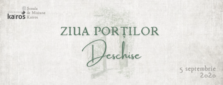 Sâmbătă, 5 septembrie 2020, echipa Școlii de Misiune Kairos invită toți abiturienții la Ziua Porților Deschise. În intervalul orelor 09:30-15:30, părinți alături de copii lor sunt invitați să facă cunoștință cu programele de instruire din Școala de Misiune Kairos.