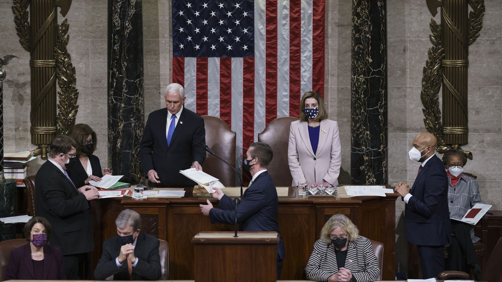 Vicepreşedintele Mike Pence – care are datoria constituţională de a prezida şedinţa comună unde se numără voturile electorilor – a numit-o „o zi neagră în istoria Capitoliului Statelor Unite” însă a adăugat că Congresul nu va fi intimidat.