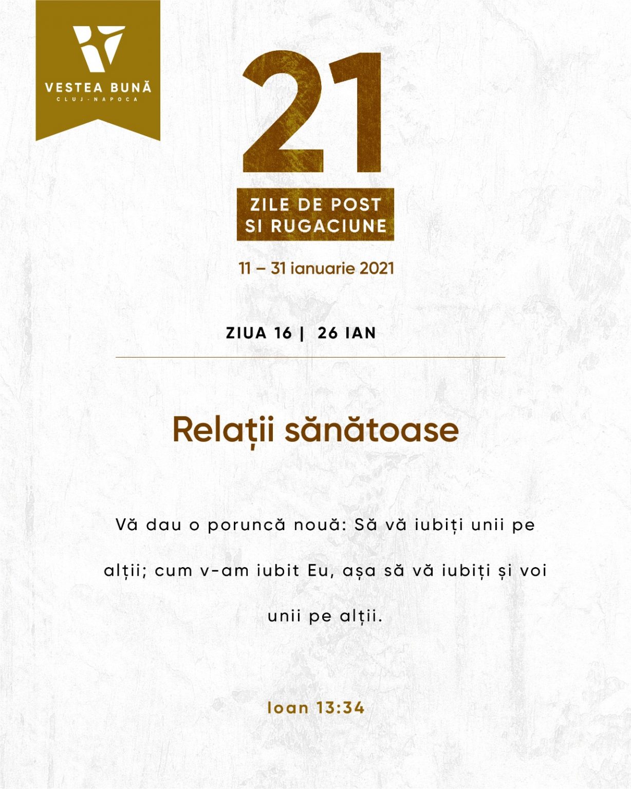 „Dar mai presus de toate acestea, îmbrăcați-vă cu dragostea, care este legătura desăvârșirii! Pacea lui Hristos, la care ați fost chemați ca să alcătuiți un singur trup, să stăpânească în inimile voastre! Și fiți recunoscători!”