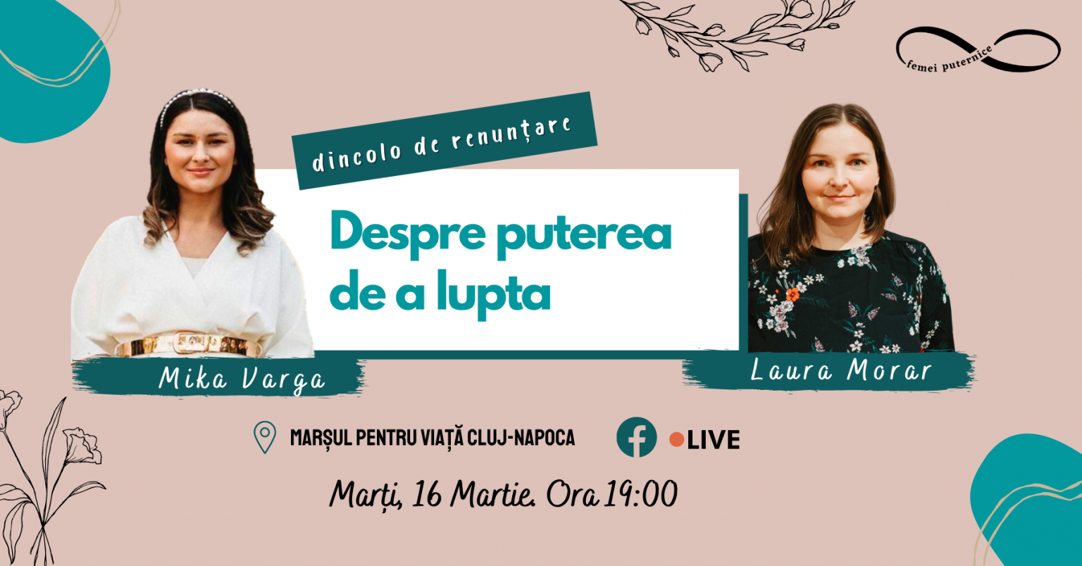 Următorul eveniment live al campaniei #Femeiputernice se desfășoară în data de 16 Martie, de la ora 19:00, pe pagina de Facebook Marșul pentru Viață Cluj-Napoca.