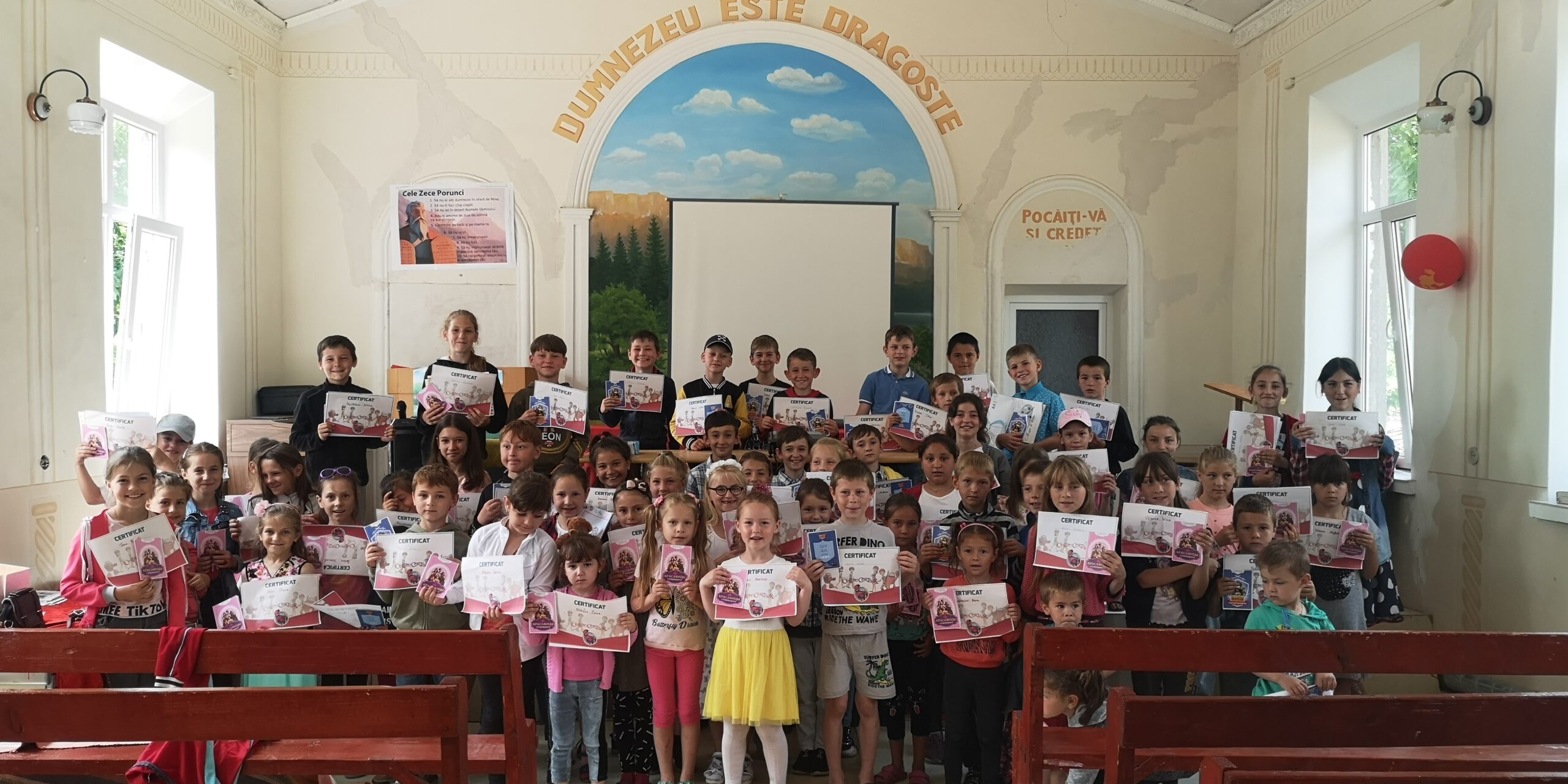 Timp de trei zile am studiat intens „Cele zece porunci”, au învățat cum să-L iubească pe Dumnezeu, cum să-și iubească aproapele și de ce este important să respecte poruncile. Toate cunoștințele acumulate în cele trei zile, copii le-au prezentat frumos duminică în cadrul programului bisericii locale părinților. La program au participat mămici și bunici, care au rămas plăcut surprinse de cât de multe au reușit să învețe în doar trei zile.