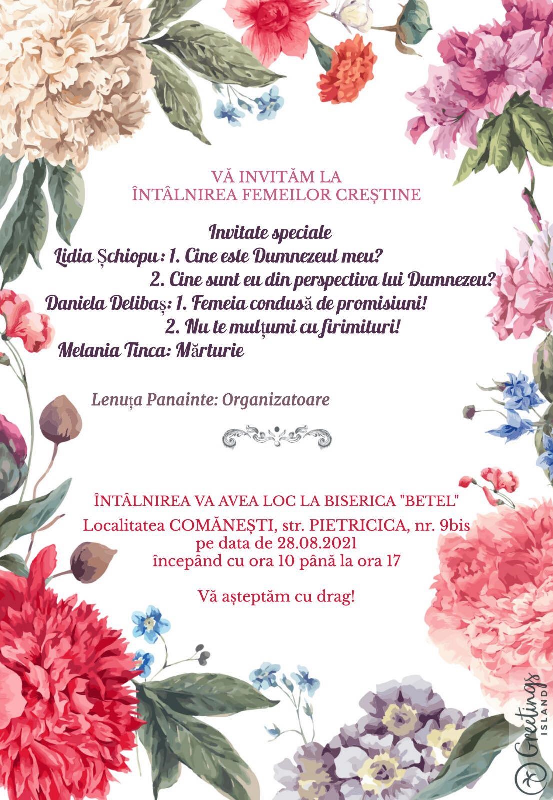 Dacă sunteți din zonă, profitați de ocazie de a vă bucura alături de femei creștine. Conferința se va desfășura în intervalul orelor 10:00-17:00 pe adresa: strada Petricica 9.