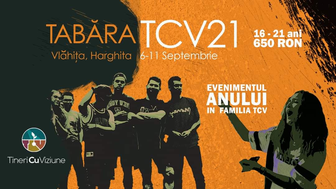 După un an pandemic, Tabăra Tineri cu Viziune (TcV) revine în forță cu multe surprize! În perioada, 6-11 septembrie 2021, toți cei care doresc să trăiască intens ultima săptămână din această vacanță sunt invitați la ediția TcV 2021! Tabăra Tineri cu Viziune (TcV) se mută în cea mai faină locație de tabere din România – Vlăhița, Harghita, pentru săptămâna pe care cu toții o așteptăm de doi ani încoace.