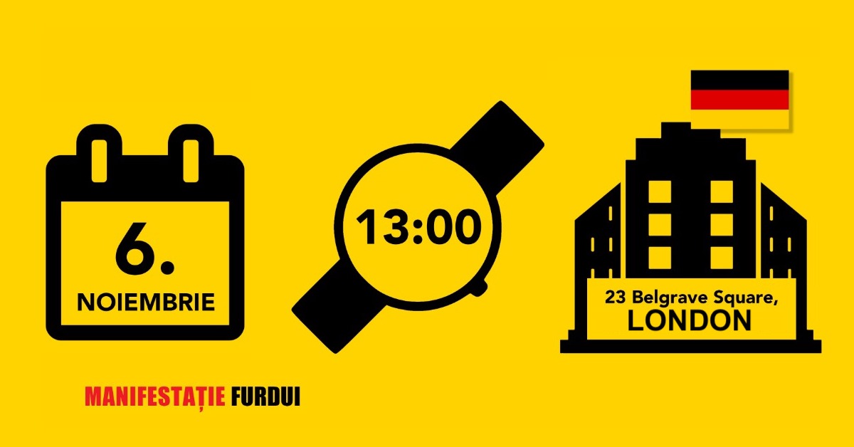 Cea de-a doua manifestare pașnică începe la ora 13:00-15:00 la Londra, ora Marii Britanii, în locația: 22 Belgrave Square. Pentru mai multe detalii și locație vedeți evenimentul pe pagina oficială de Facebook AICI!