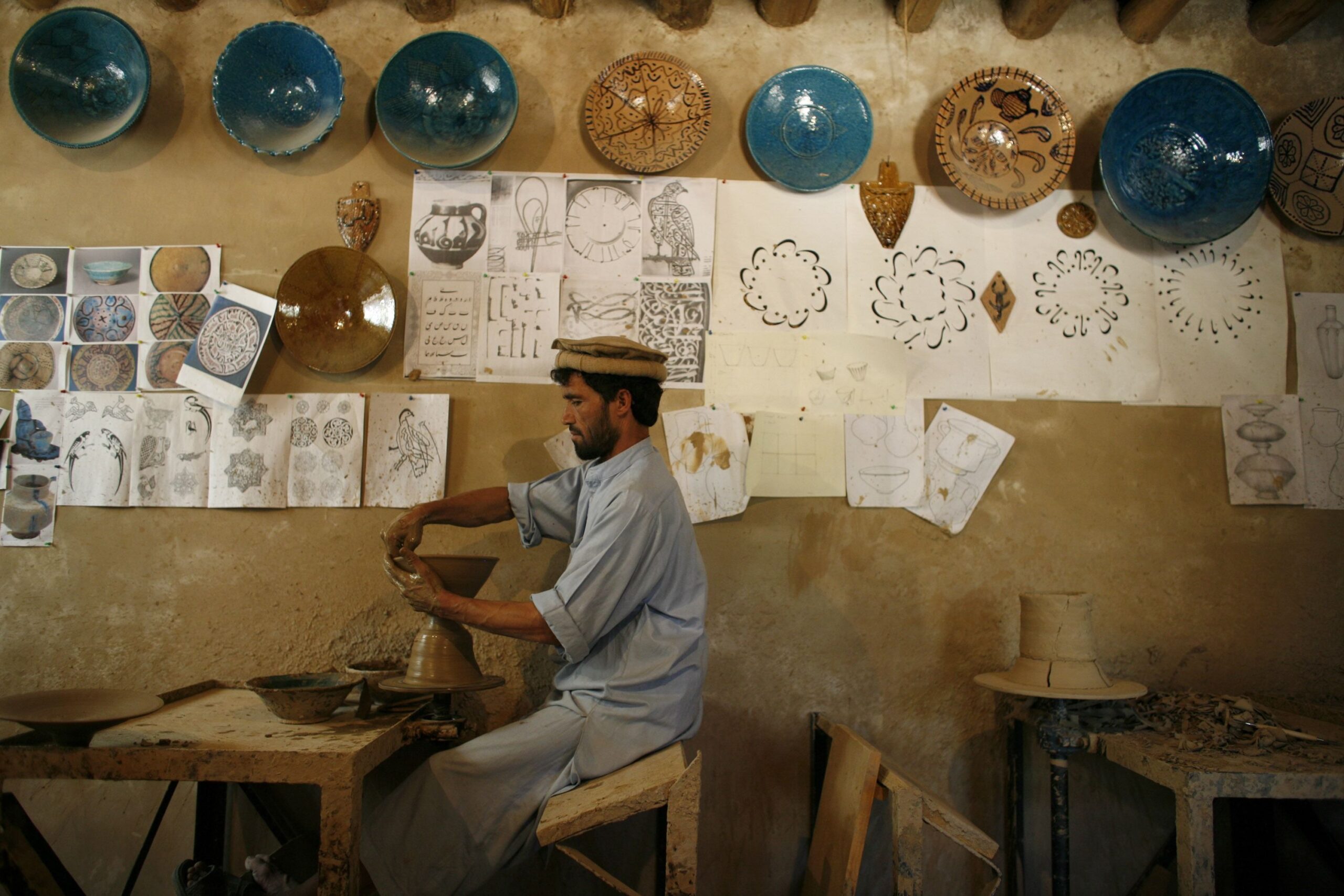 „În urmă cu șase luni, talibanii au mărșăluit victorios”, își amintește el. „În câteva săptămâni, multe magazine artizanale din capitala țării au fost avertizate cu privire la designul folosit în obiecte artistice expuse.
