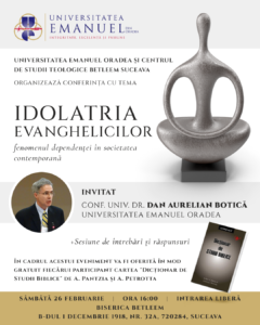 Universitatea Emanuel Oradea și Centrul de Studii Teologice Betleem Suceava organizează conferința intitulată IDOLATRIA EVANGHELICILOR – Fenomenul dependenței în societatea contemporană.
