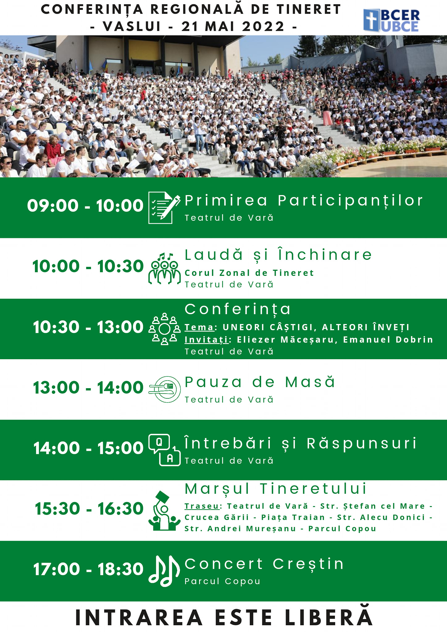Ziua se va încheia ziua cu un concert creștin în Parcul Copou.