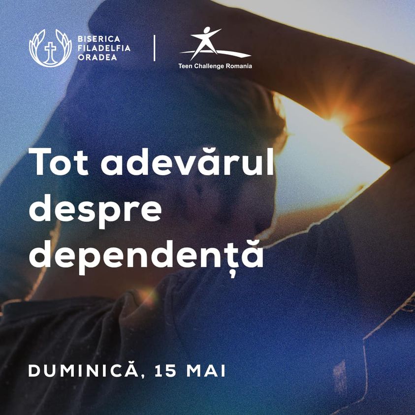 Duminică 15 Mai, la programul de dimineață, reprezentanți ai Teen Challenge România vor fi prezenți la Biserica Filadelfia din Oradea unde vor vorbi despre tema: „Tot adevărul despre dependență”.