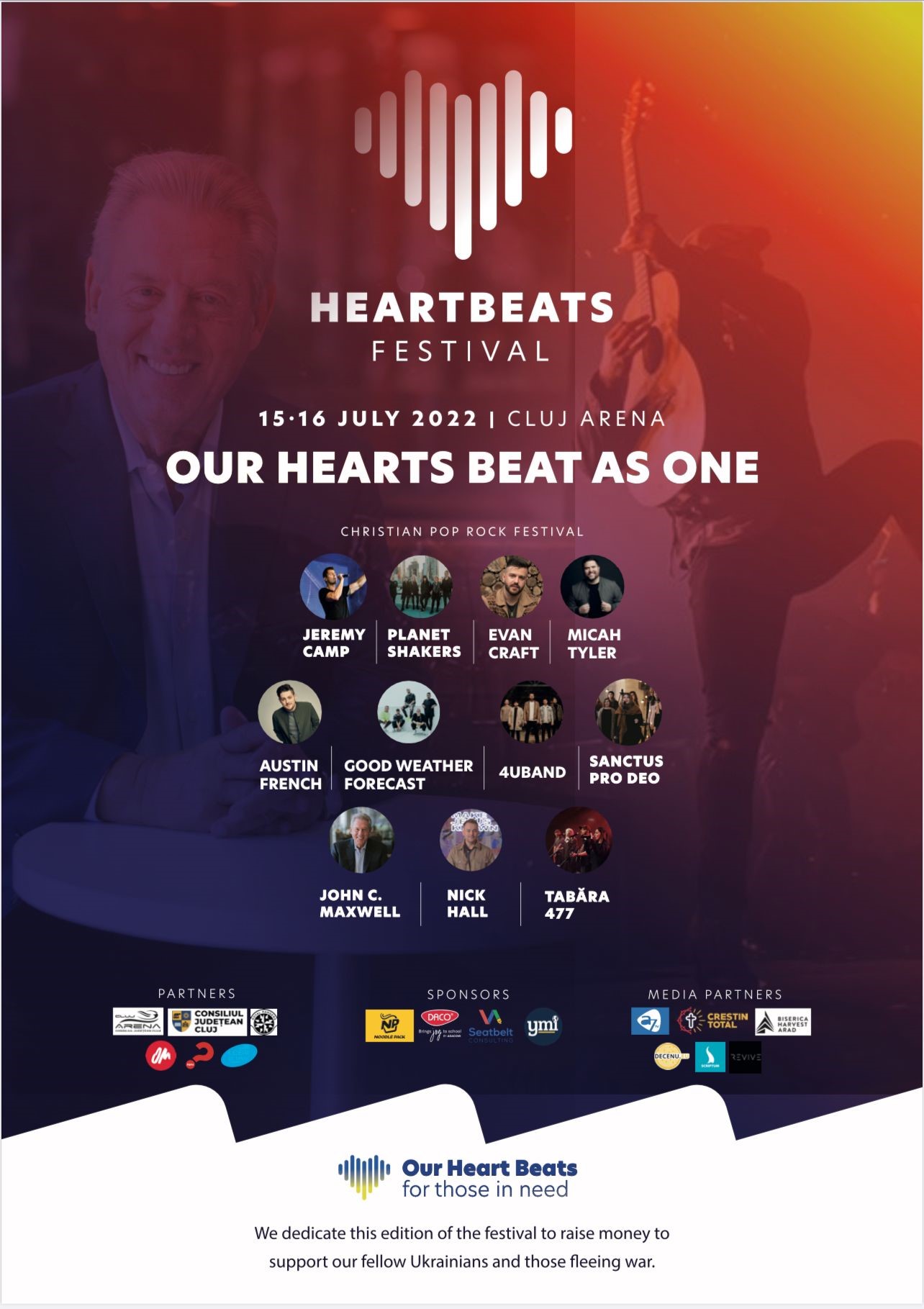 - HeartBeats nu mai este acum doar un concert, ci un festival care va dura 2 zile. Vor fi prezente 7 trupe internaționale (inclusiv o trupă din Ucraina) și 2 trupe din România. Pe lângă concerte, în fiecare seară va exista un mesaj (prin prezența pastorului și speaker-ului de renume internațional John C. Maxwell, respectiv a evanghelistului Nick Hall (organizația PULSE), un nou Billy Graham al Americii). Acestora se adaugă o serie de spații de socializare / lounge și discuții, spații de vânzare carte, spații de promovare a artiștilor / producătorilor locali șamd. Festivalul creează o atmosferă de bună-dispoziție, un spațiu sigur pentru tineri și familii.