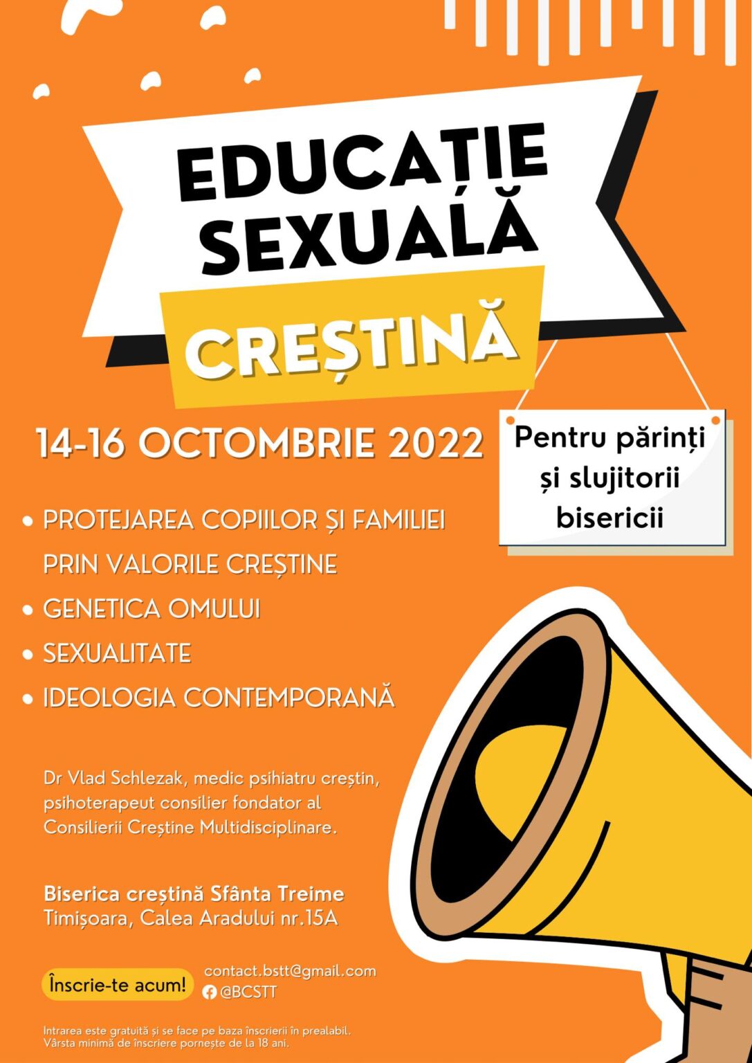 În perioada 14-16 Oct 2022 va avea loc conferința ‘Educație sexuală creștină – pentru părinți și slujitorii bisericii’ la Biserica Sfanta Treime din Timișoara.