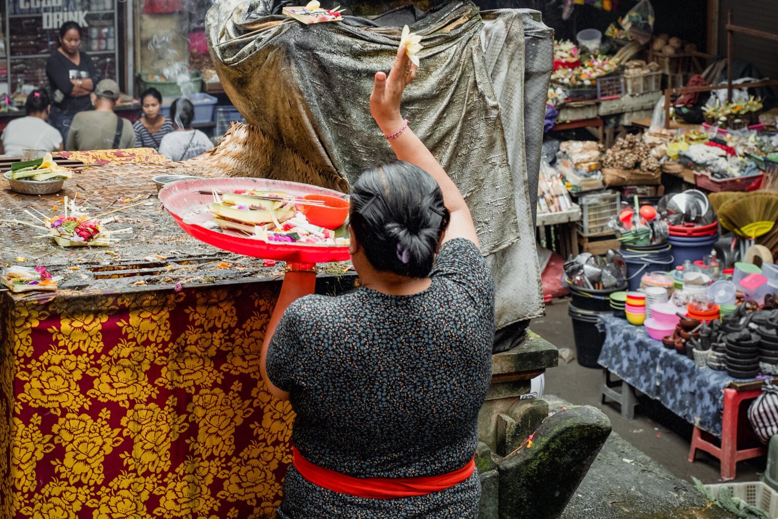Bărbatul ajunge la micul templu și în fața acestuia se oprește în drum. Dacă se întâmplă să treacă vehicule, acestea încetinesc și trec pe lângă el cu respect, în loc să claxoneze sau să îi ceară să se dea la o parte din drum. Dar el pare să nu fie conștient de niciun trafic. Îl privesc cum își așează mica ofrandă pe piedestal – niște orez, flori de gălbenele și o lampă mică de lut numită Diya, pe care o aprinde împreună cu un băț de tămâie și o așează în fața idolului. Strângându-și mâinile și plecându-și capul, își oferă rugăciunile.