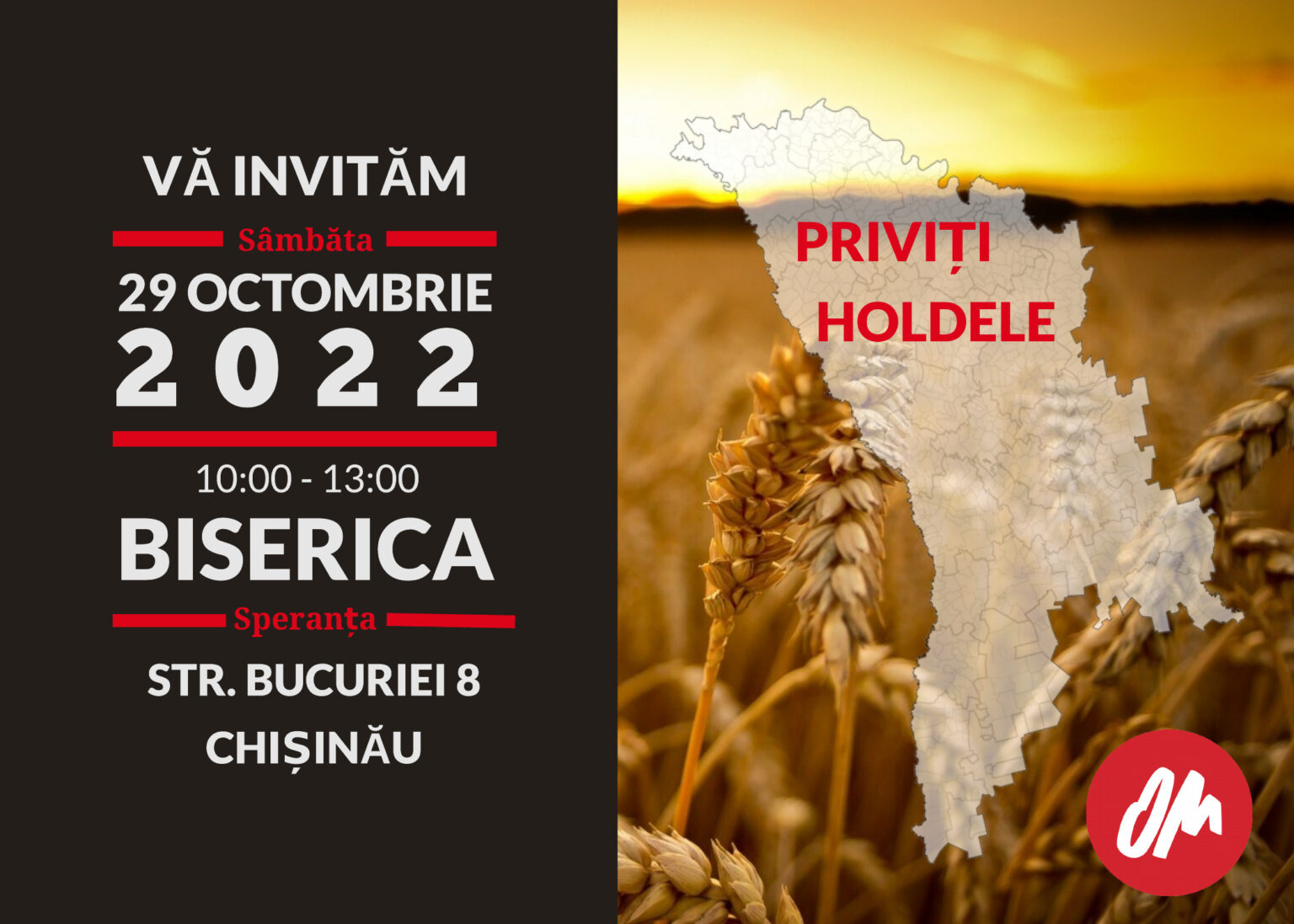 „Dorim să vedem comunități vii ale urmașilor lui Isus printre cei mai puțin evanghelizați” ghidați de acest motto echipa Operațiunea Mobilizatoare din Republica Moldova provoacă comunitatea evanghelică să „Privească Holdele”! În cadrul unui eveniment special, va fi lansată Harta detaliată care reflectă prezența evanghelică din țară.