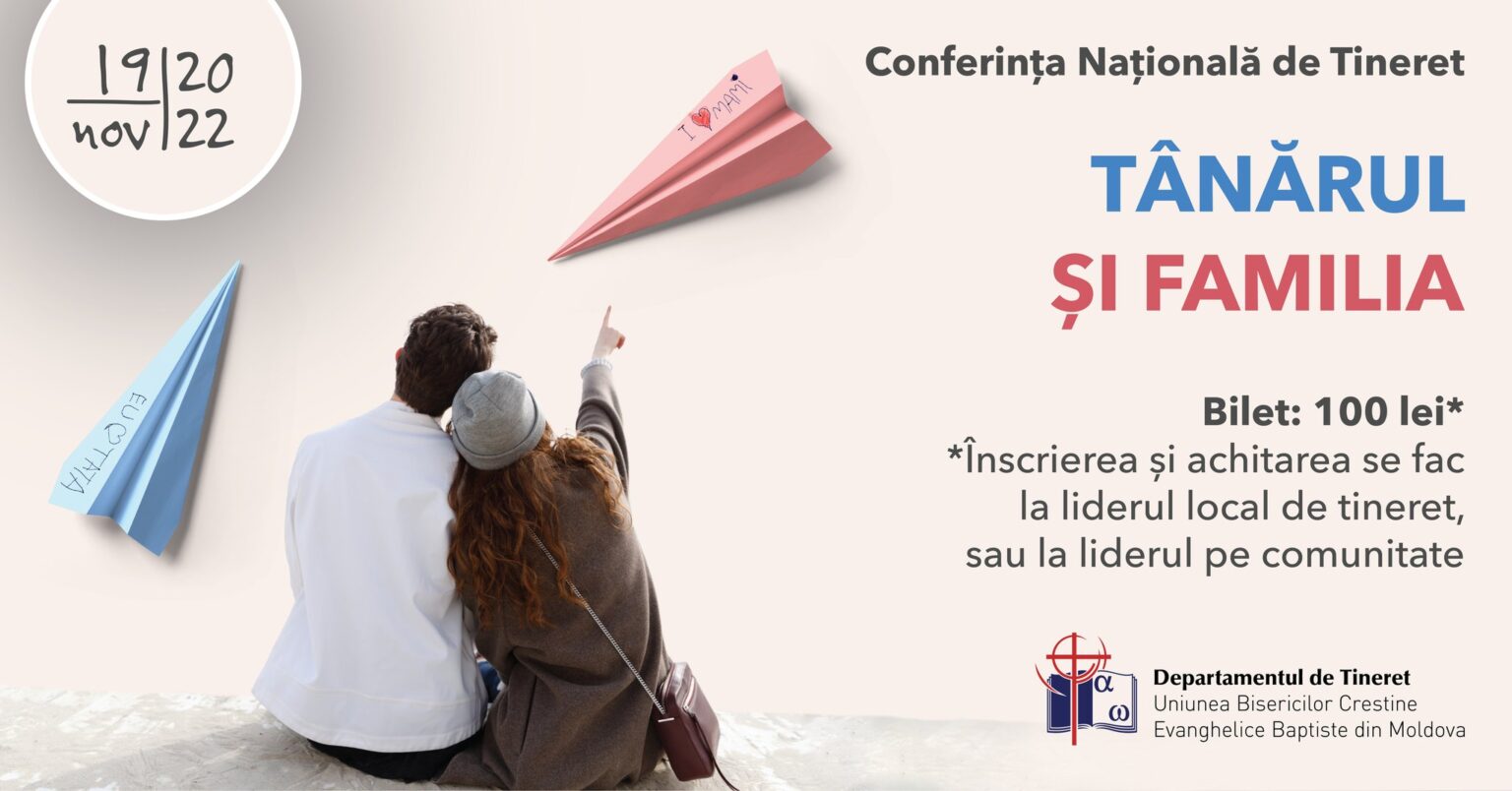 După o pandemie și război, revenim la tradiționalele Conferințe Naționale de Tineret. Ediția 2022 are tema: „Tânărul și Familia” și va fi găzduită pe 19 noiembrie de Biserica Baptistă „Betel” din Chișinău!