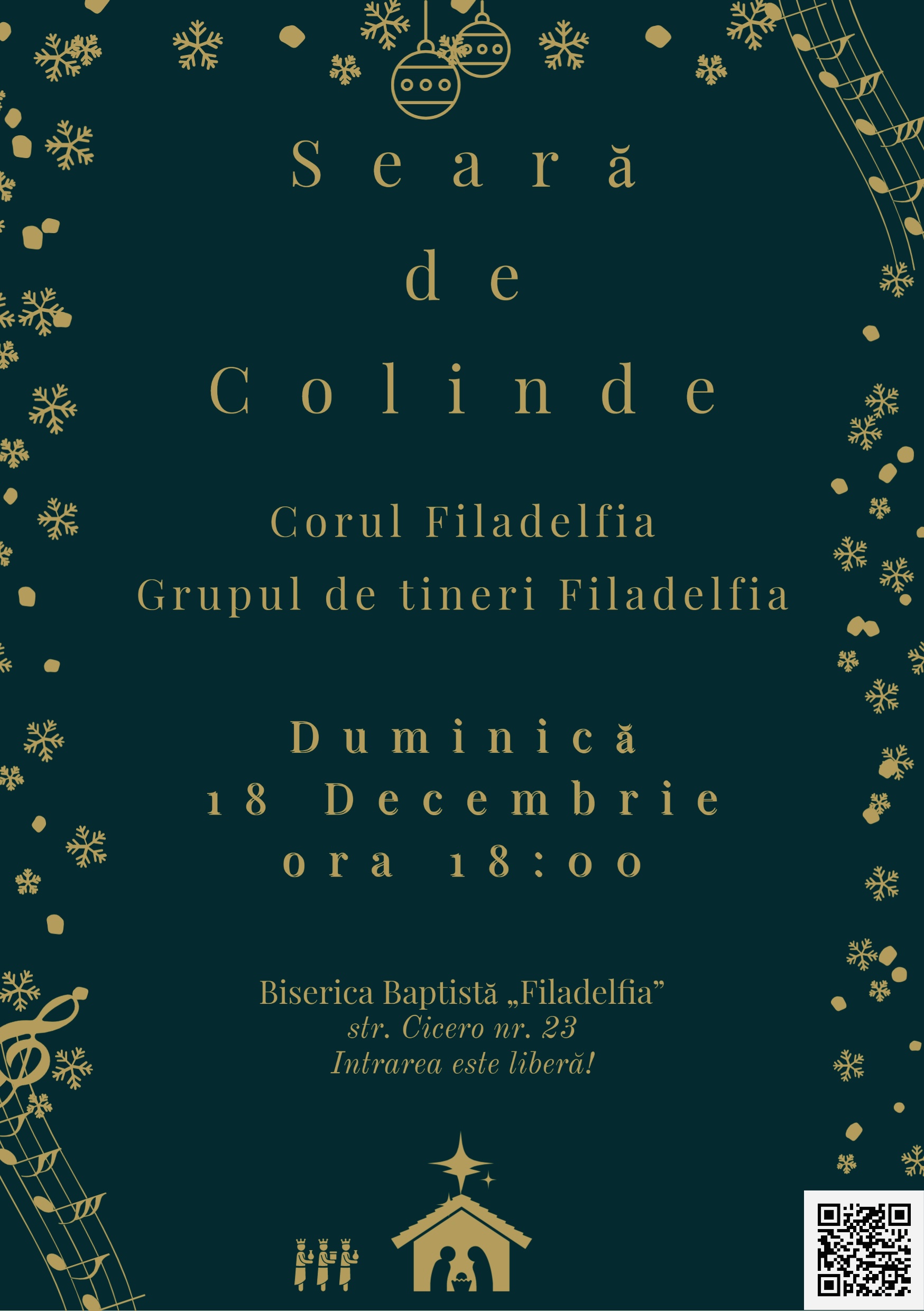 Share Facebook Twitter LinkedIn Pinterest Email În data de 18.12.2022 orele 18.00, va avea loc un concert de colinde la Biserica Baptistă „Filadelfia” din Drobeta-Turnu Severin. Va cânta Corul Filadelfia și Filadelfia Worship. Intrarea este liberă. Vă așteptăm! Apreciază:Apreciază Încarc... colinde Decembrie Naşterea Domnului Naşterea Domnului Isus tineri Filadelfia