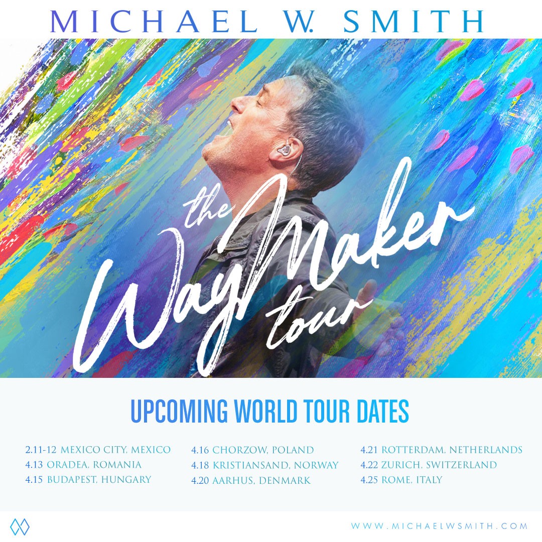 După 10 ani, Michael W. Smith revine în România! Arena „Antonio Alexe” din Oradea este prima scenă din Europa pe care va evolua în turneul 2023. Evenimentul face parte din „The Waymaker Tour” care începe pe 13 aprilie în România și se încheie pe 25 aprilie în Italia. Pe harta turneului se numără și: Ungaria, Polonia, Norvegia, Danemarca, Olanda, Elveția și Italia.