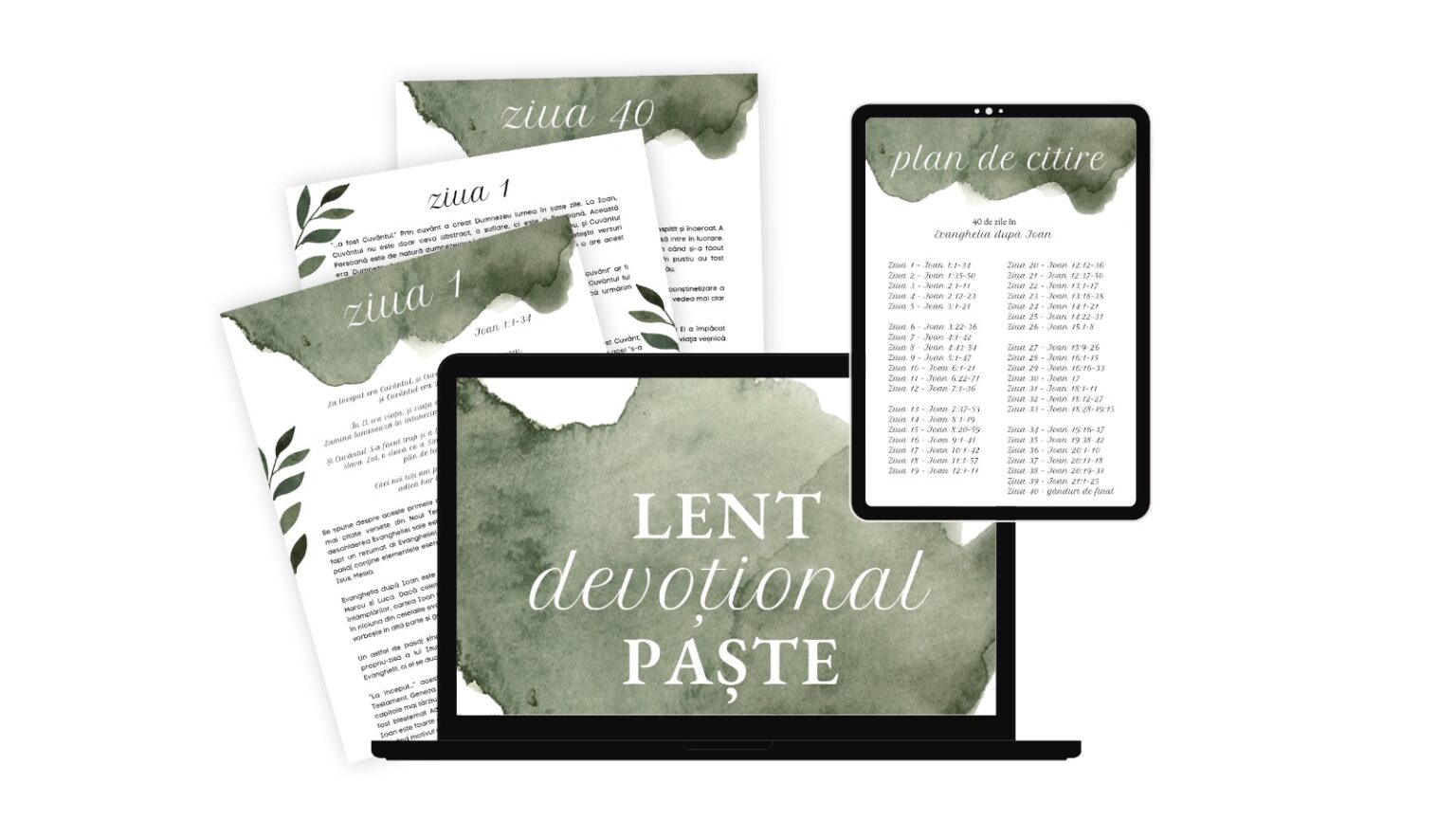 Lent – Devoțional vine din limba engleză și înseamnă perioada de post dinaintea Paștelui. 40 de zile în care să te pregătești spiritual pentru marea Înviere. Materialul include un plan de citire a Evangheliei după Ioan în 40 de zile cu 40 de texte biblice și 40 de meditații cu întrebări de reflecție.