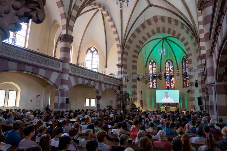 Slujba religioasă cu IA a fost unul dintre sutele de evenimente din cadrul convenției protestanților din orașele bavareze Nürnberg și din orașul vecin Fuerth, și a stârnit un interes atât de mare încât oamenii au format o coadă lungă în fața clădirii neogotice din secolul al XIX-lea, cu o oră înainte de începerea ei.