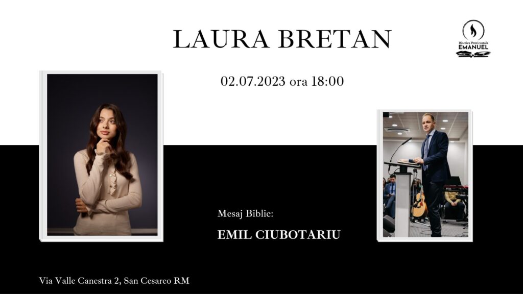 Evenimentul se va bucura de prezența Laurei Bretan care ne va încânta sufletele cu vocea ei minunată.